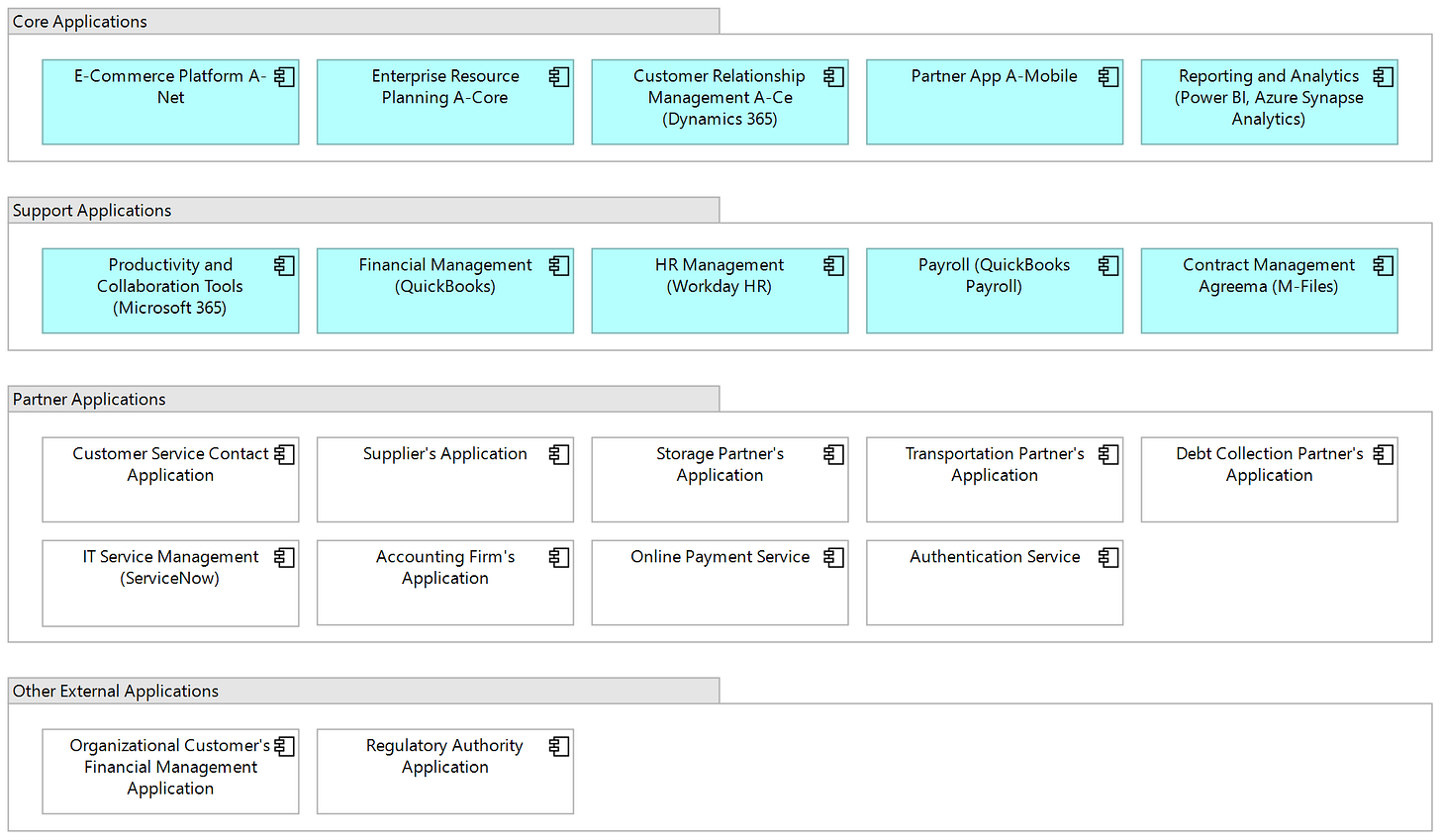 - By business area or capability (e.g., Sales, HR, Logistics)
